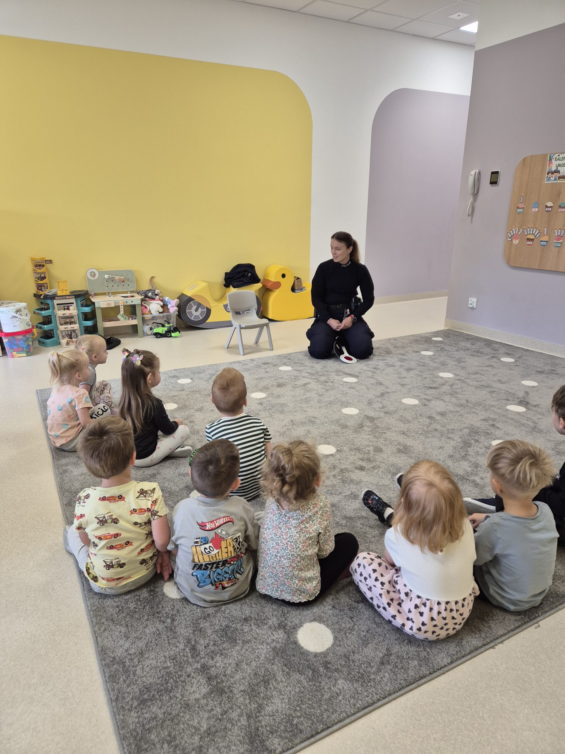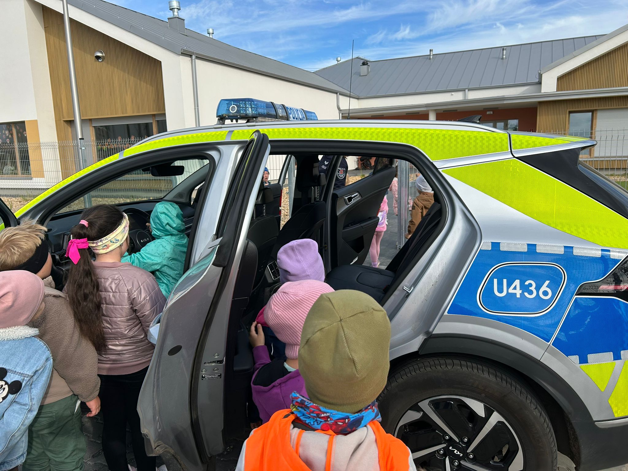 Poznajemy zasady poprzez zabawę. W przedszkolu odbyło się spotkanie z funkcjonariuszem policji poświęcone bezpieczeństwu na drodze. Dzieci miały okazję poznać zawód policjanta, dowiedzieć się, jak prawidłowo przechodzić przez jezdnię, dlaczego warto nosić odblaski. Największe emocje wzbudziła możliwość obejrzenia z bliska radiowozu policyjnego.