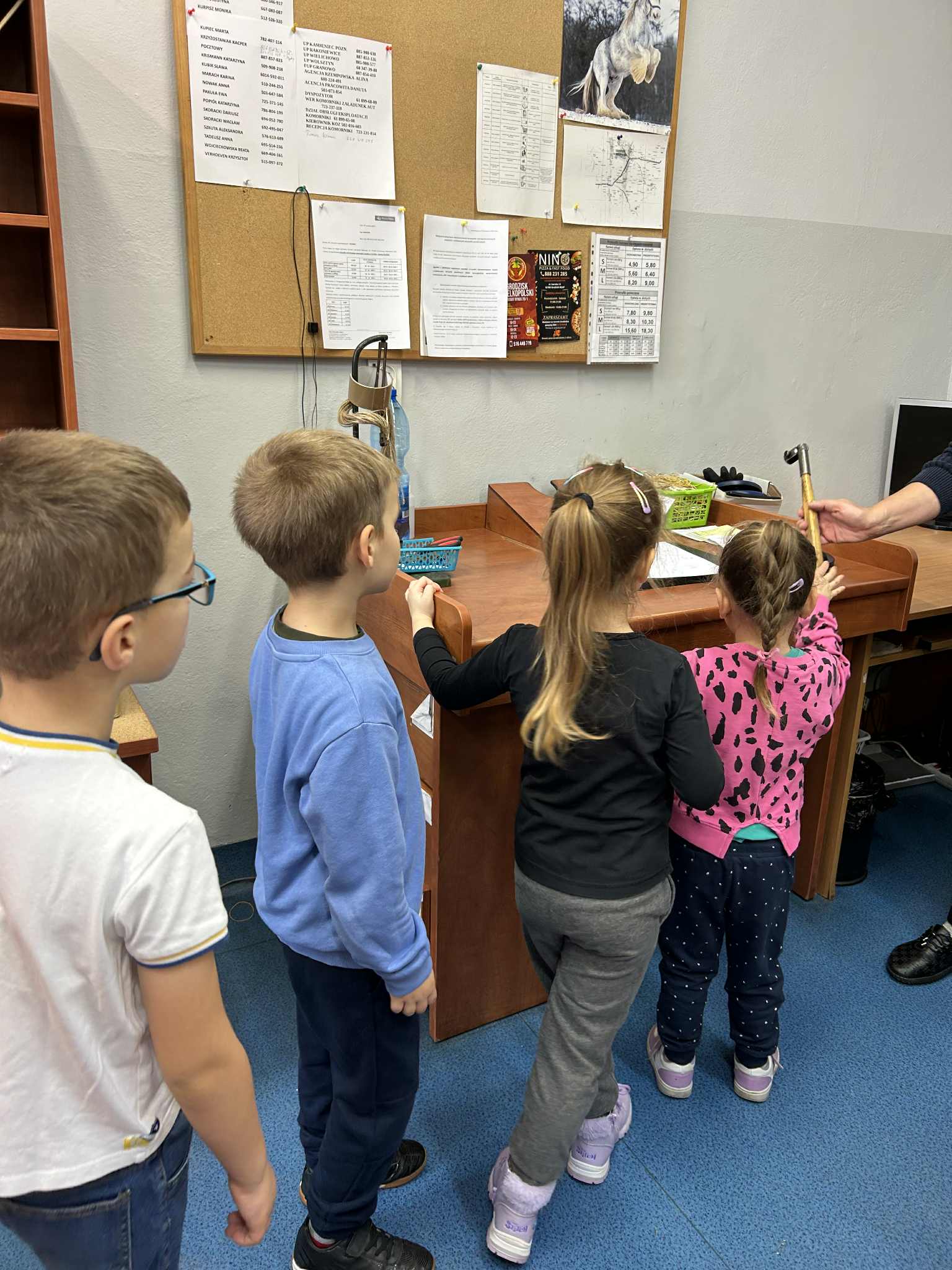 Z okazji Dnia Listonosza nasze przedszkolaki wybrały się z wizytą na pocztę. Dzieci z dużym zainteresowaniem obserwowały, jak wygląda codzienna praca listonosza, co dzieje się z listem, zanim trafi do adresata. Obejrzały również okienko pocztowe, znaczek, kopertę i skrzynkę na listy. To była wspaniała lekcja !