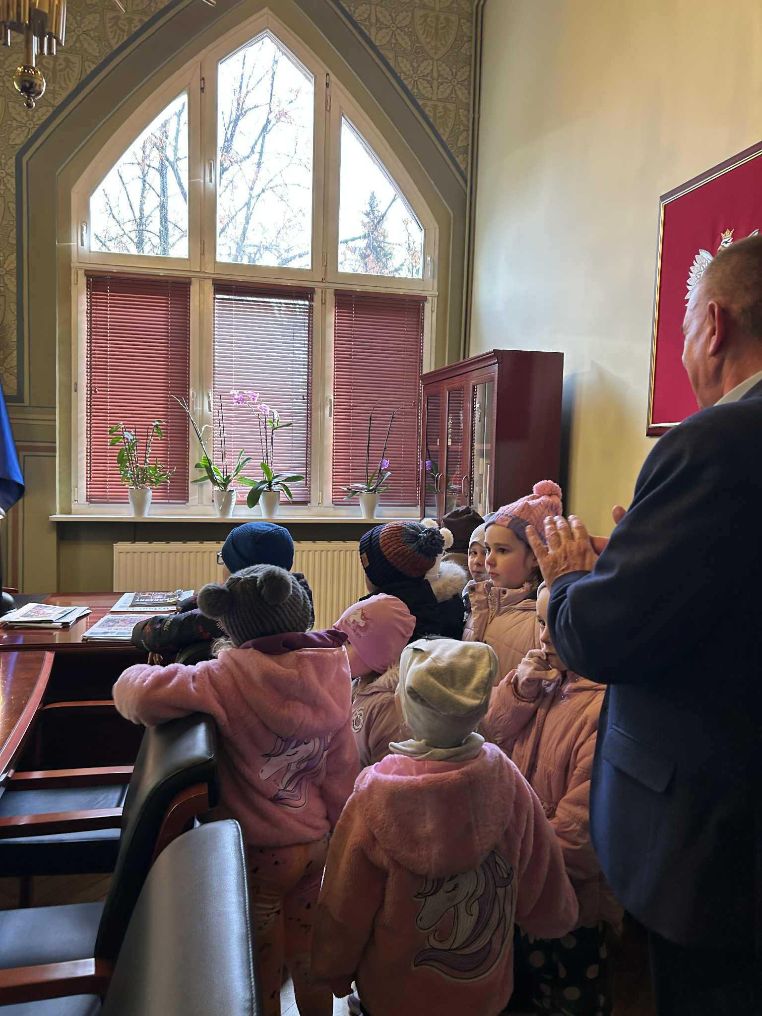 W ramach współpracy ze środowiskiem lokalnym, najstarsza grupa przedszkolaków odwiedziła Starostwo Powiatowe w Grodzisku Wielkopolskim.  Była to nie tylko ciekawa przygoda, ale także doskonała okazja do poznania pracy urzędników oraz funkcjonowania lokalnych instytucji. Podczas wizyty dzieci zwiedziły najważniejsze pomieszczenia urzędu, poznały pracowników starostwa i ich codzienne obowiązki, miały okazję zobaczyć, gdzie podejmowane są ważne decyzje dotyczące powiatu. Nie ma nic cenniejszego niż zdobywanie wiedzy przez doświadczenie!