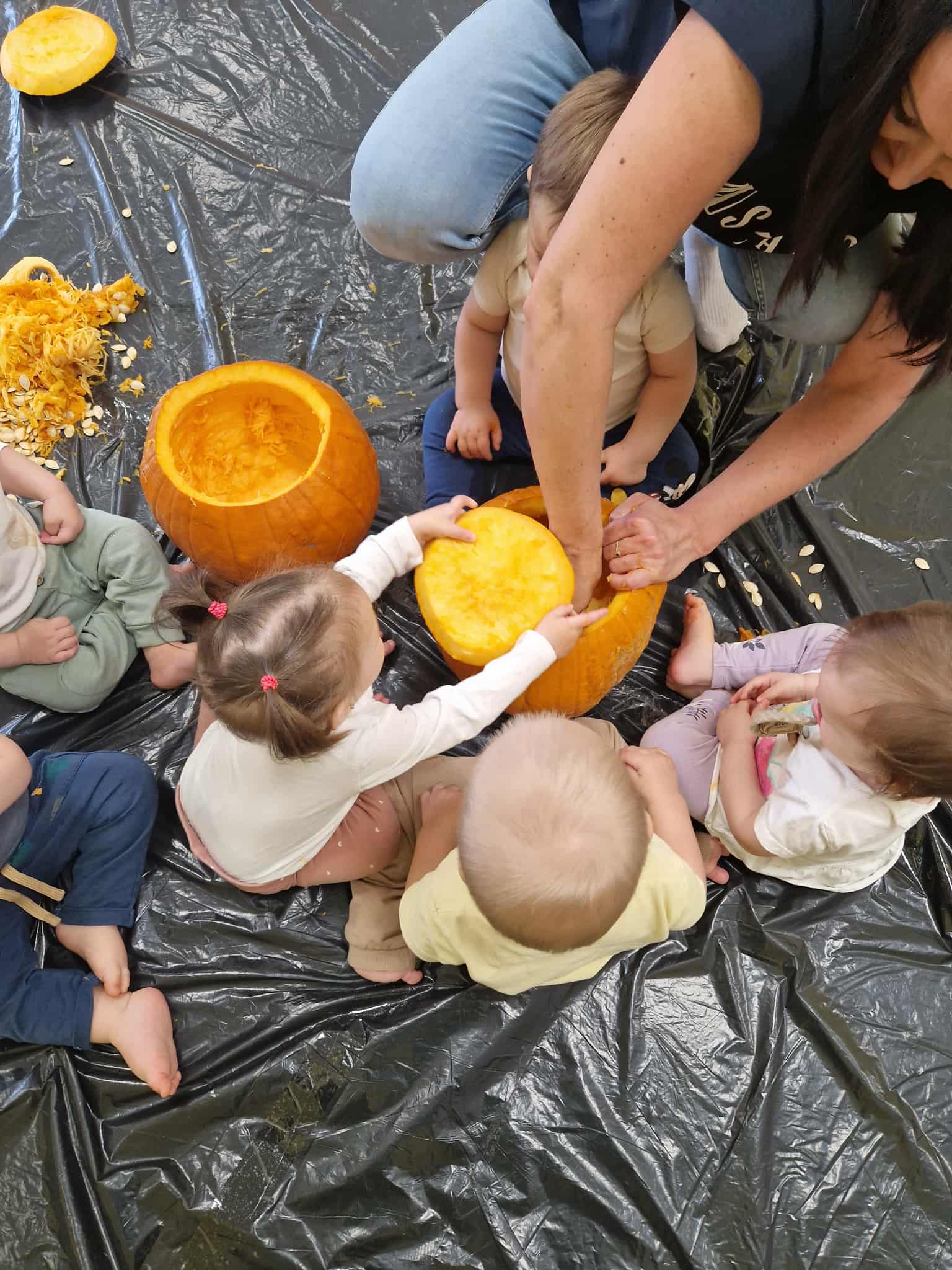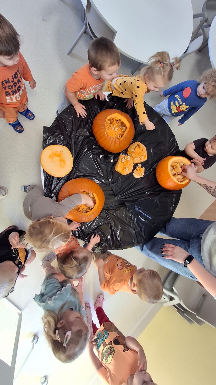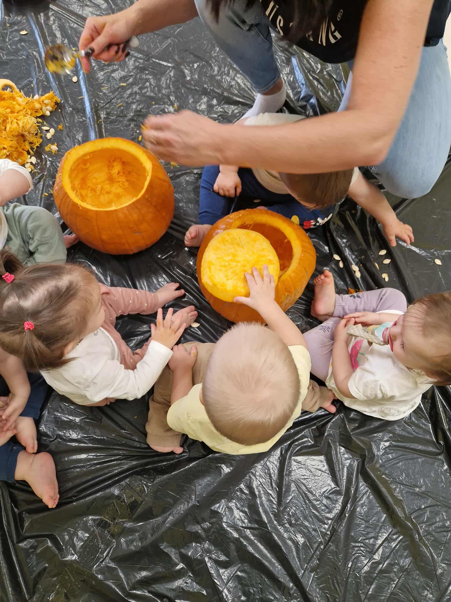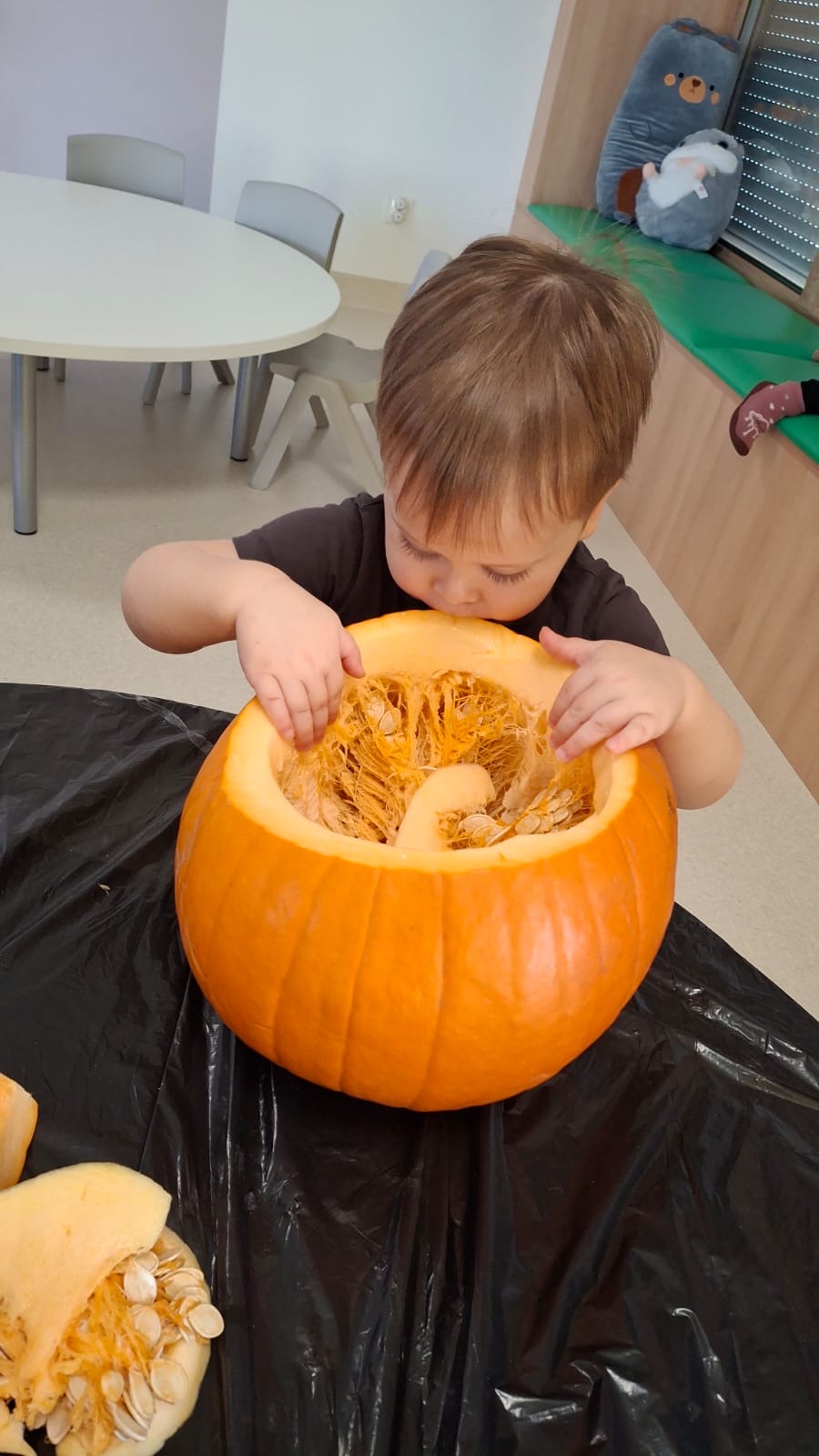 W naszym żłobku obchodziliśmy wyjątkowe święto- Dzień Dyni! Tego dnia w salach zagościł kolor pomarańczowy, a maluszki mogły poznać to niezwykłe warzywo poprzez zabawę, dotyk, smak. Dzieci uczestniczyły w zabawach ruchowych, plastycznych i sensorycznych z dynią w roli głównej.